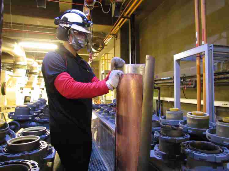 欧陆注册将废弃物转化成有效的工业或民生原物料,,,,图为废铜液淬炼后再制成纯度极高的铜管