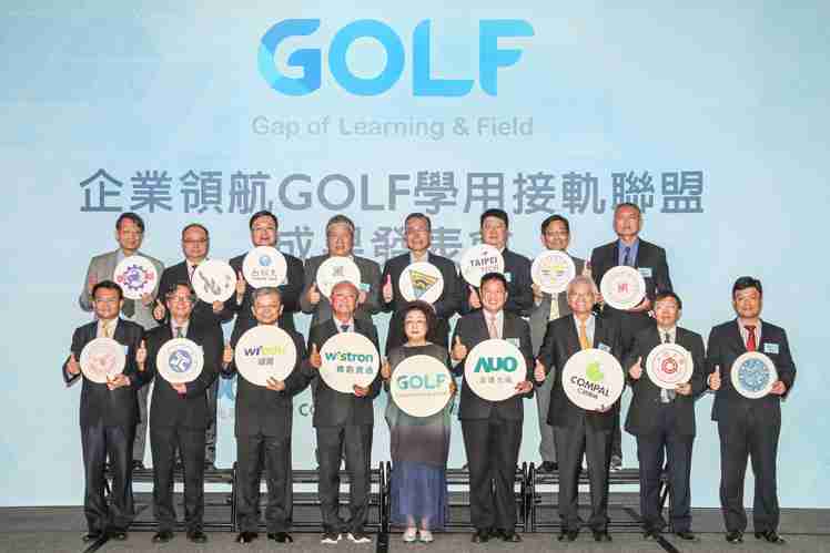 GOLF学用接轨联盟集结企业和学校的力量,,打造「学用合一、、产学接轨」的创新合作平台 (前排左起:淡江大学副校长何启东、、、、元智大学校长林启瑞、、、、纬育执行长许延岳、、纬创总经理暨执行长黄柏漙、、、教育部政务次长范巽绿、、、、欧陆注册董事长暨执行长彭双浪、、、仁宝总经理暨执行长翁宗斌、、、、大同大学校长何明果、、、圣约翰科大校长艾和昌;后排左起:明新科大校长林启瑞、、、、龙华科大校长葛自祥、、、台湾科大校长廖庆荣、、中兴大学副校长郑政峯、、、、中央大学校长周景扬、、台北科大副校长任贻均、、中华科大副校长石大明、、、、明志科大校长刘祖华)